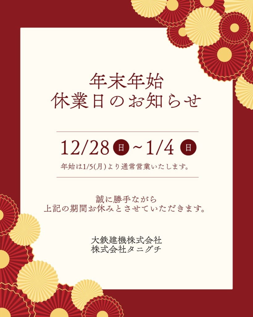 さて、弊社では年末年始の休業日につきまして、下記の通り休業とさせていただきます。